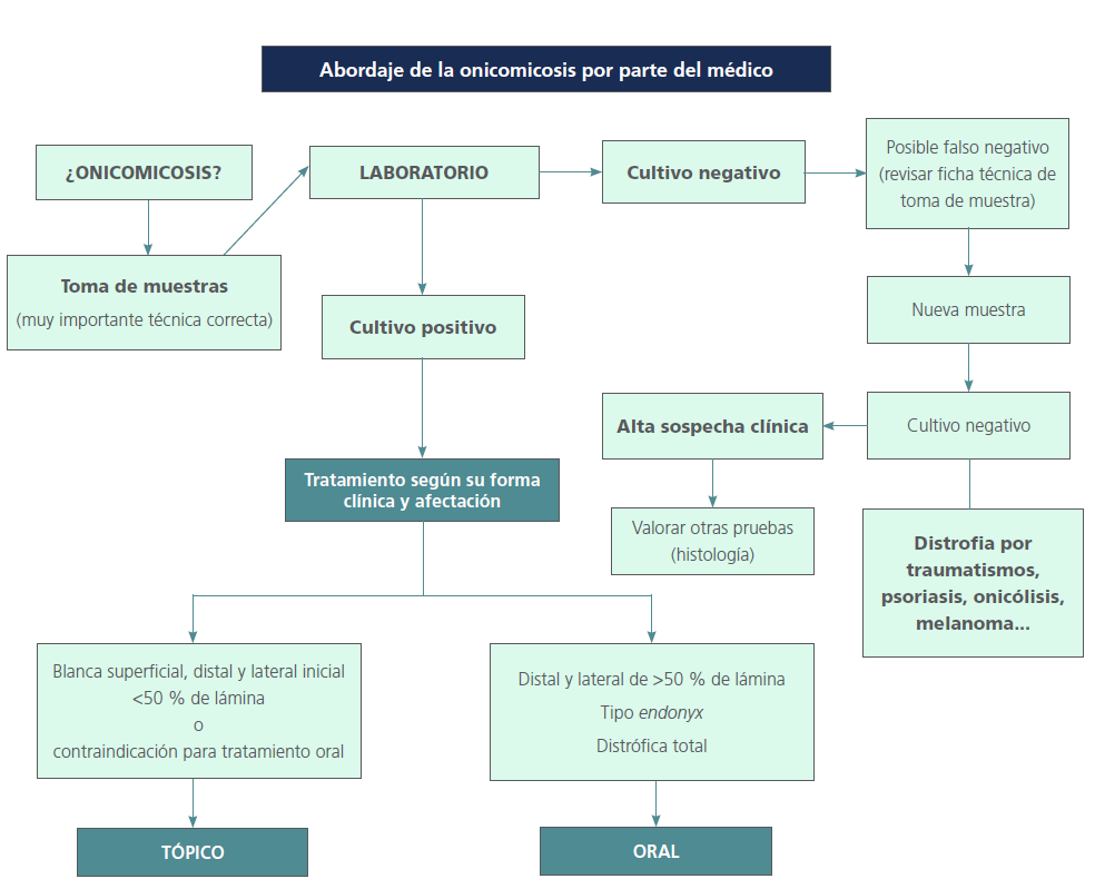Figura 1. Algoritmo de manejo y tratamiento de la onicomicosis por parte del médico.