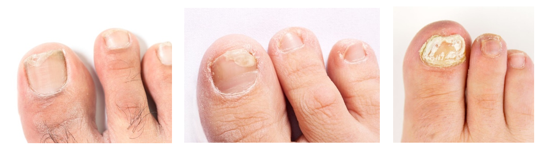 Figura 2. De izquierda a derecha, onicomicosis leve, moderada y grave.