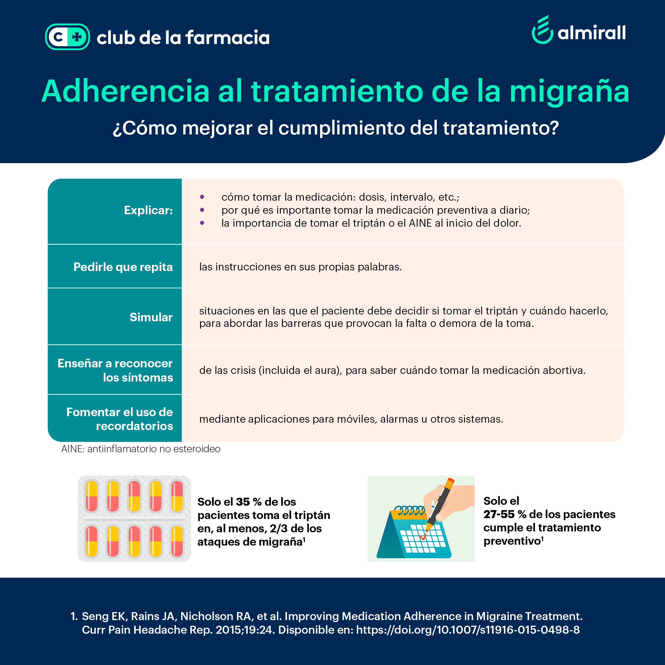 Descarga esta infografía para conocer los datos de adherencia y las claves de cómo mejorar el cumplimiento del tratamiento en los pacientes con migraña.