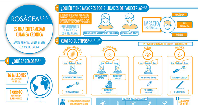 Descarga esta infografía para saber más acerca de la rosácea, una enfermedad cutánea crónica de la piel