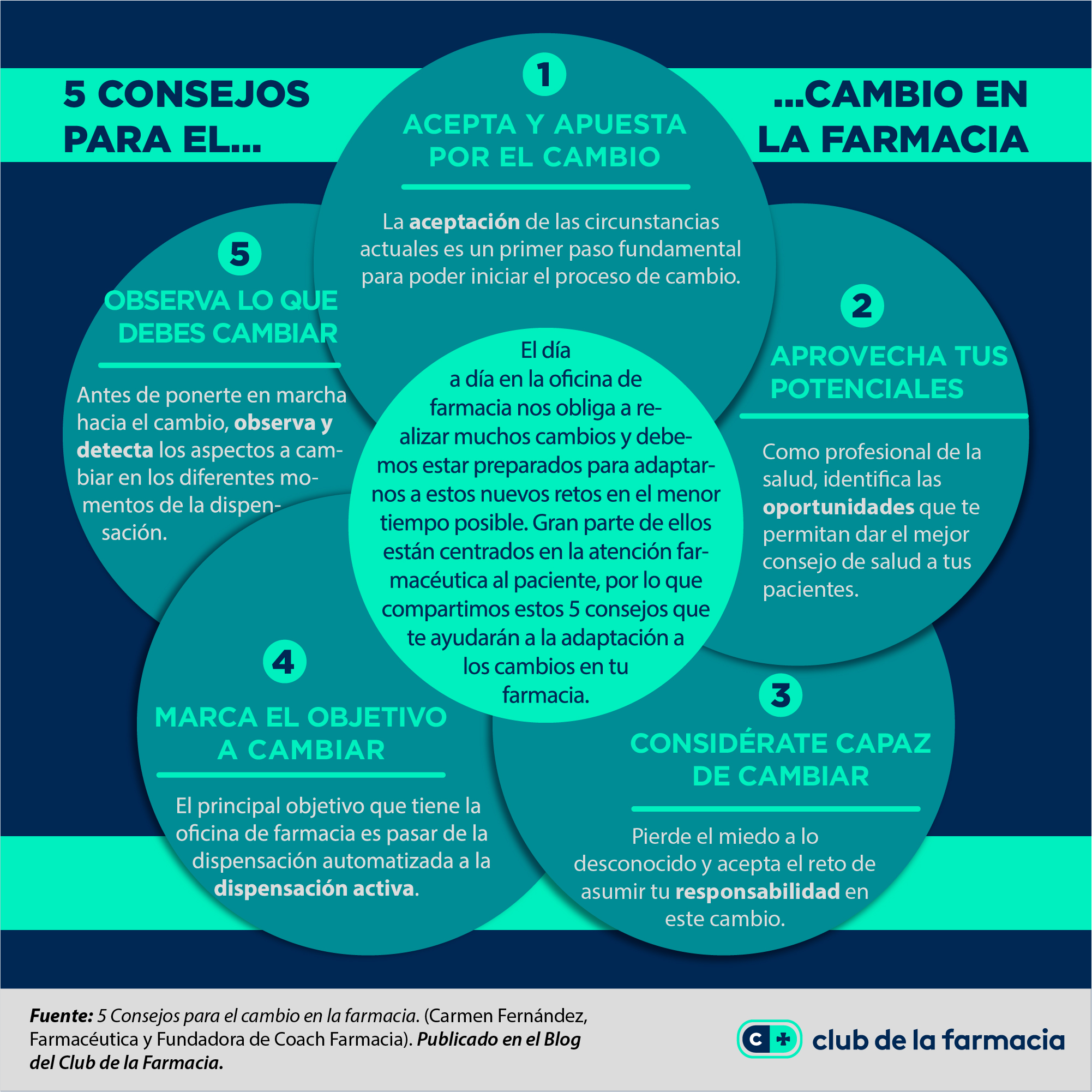 El cambio en la oficina de farmacia empieza en ti y en todos y cada uno de tus compañeros de equipo. Para que el cambio repercuta positivamente en la farmacia, cada uno de vosotros deberéis poneros en marcha hacia este cambio de manera individual.