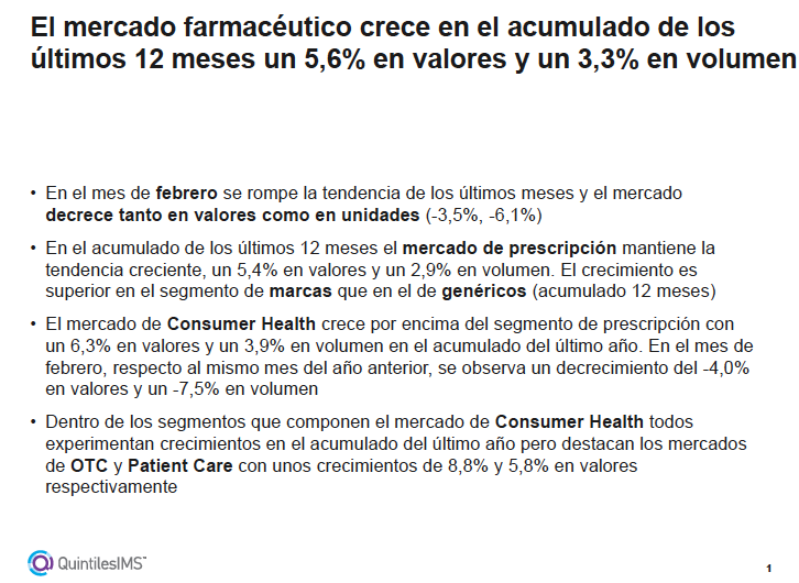 Por último la reflexión de una pareja muy interesante de Cádiz: “La información es clave para planificar tu estrategia, poseerla es como estar en el cerro de los Mártires de San Fernando, desde allí arriba lo ves todo” Farmacia Mercado Central de San Fernando. Hay una gran cantidad de información que se pone a disposición de la farmacia y cada día más, por lo que aprovecharse de ella está en la mano de cada uno. Y si quieres tener más información de cómo va el mercado de la farmacia española únicamente tienes que hacer clic aquí y podrás ver el informe QuintilesIMS_InformeFarmacias_Febrero2017 de este mes de Febrero 2017.