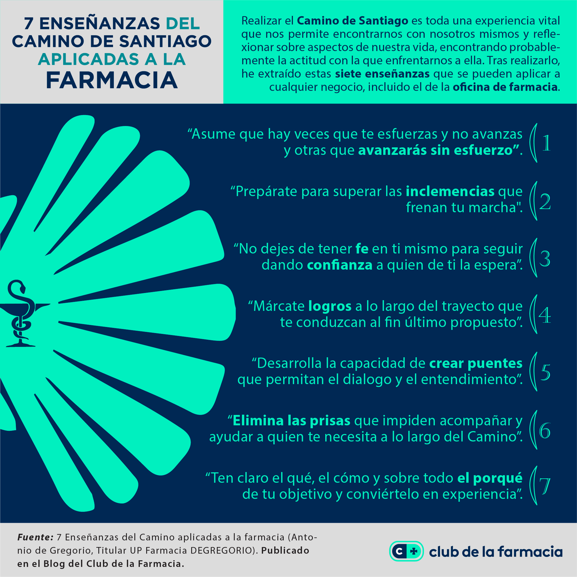 Yo acabo de regresar de un Camino muy especial realizado en compañía de mi hijo y seguramente, esta circunstancia ha aportado más intimismo a una experiencia de la cual he podido extraer siete enseñanzas que se pueden aplicar a cualquier negocio, incluido el de la oficina de farmacia.
