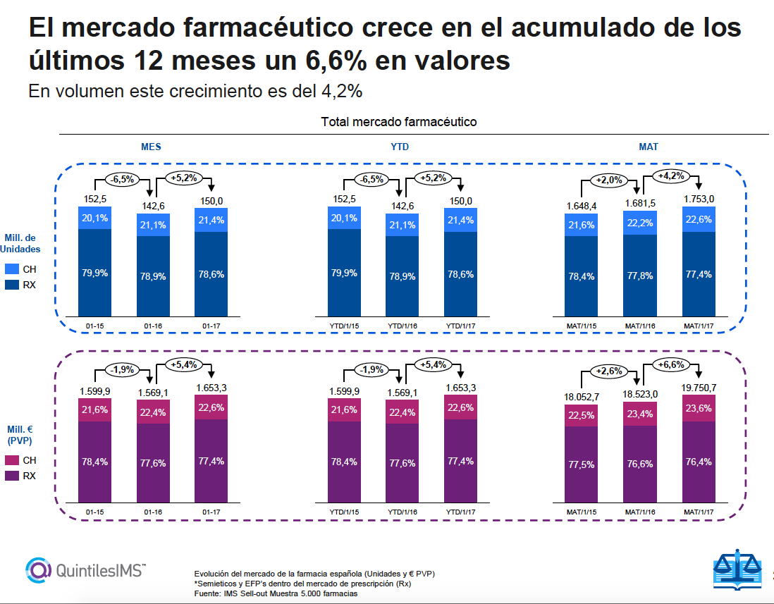 Si queremos empezar ya a apostar por el futuro debemos fijarnos en nuestro consumidor potencial y empezar a posicionarnos para cubrir todas sus necesidades, sin olvidar mantener un ojo en el mercado que nos estará marcando las tendencias actuales. Por lo que si quieres saber más del mercado y su comportamiento puedes consultar el informe que el departamento de farmacias de QuintilesIMs ha preparado para este mes haciendo clic aquí: Evolución de mercado de la Farmacia Española-Febrero 2017