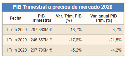 La excepcionalidad que supone la pandemia de Covid-19 producirá sin lugar a dudas un resultado negativo en la evolución del PIB. Los datos de los tres primeros trimestres del año 2020, así lo indican.