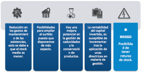 Existe otra probabilidad, que cuando apliques la fórmula observes un nivel de rotación alto, lo que supondría también dos casuísticas, la primera que hayas incrementado las ventas manteniendo el volumen del Stock medio, o que como segunda opción, se trate de haber mantenido las ventas y lo que disminuyera fuera el nivel medio del stock. Ambas opciones supone una aceleración de ventas y una serie de beneficios para la Farmacia que listamos a continuación: