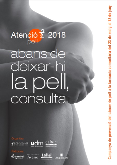 Almirall somos uno de los laboratorios patrocinadores que colaboramos con esta edición de la campaña Atenció Pell realizada por el Col·legi de Farmacéutics de Barcelona. En ella participan más de 500 farmacias (más de 800 farmacéuticos) de la provincia de Barcelona, con el objetivo de contribuir a la prevención y detección del riesgo de sufrir un cáncer de piel.