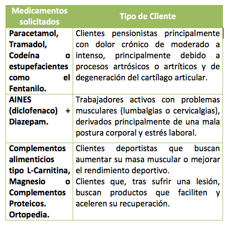A la hora de definir el tipo de cliente que acude a mi farmacia y la estrategia a seguir a nivel comercial, me fijaré no sólo en aquellos que vengan solicitando directamente consejo para el tratamiento del dolor, sino también en aquellos que acuden a la farmacia con receta médica en busca de especialidades concretas, como el paracetamol, ibuprofeno, diclofenaco, diazepam o incluso derivados opiáceos u opiáceos como el tramadol o el fentanilo.