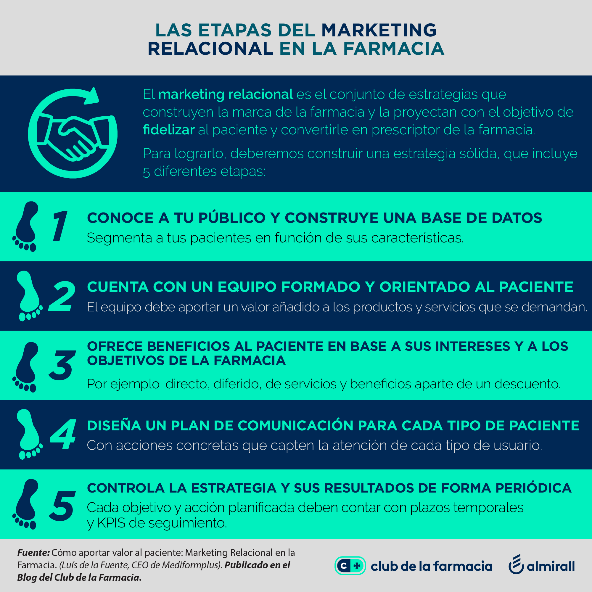 El marketing relacional es el conjunto de estrategias que construyen nuestra marca y la proyectan con el objetivo de fidelizar al paciente y convertirle en prescriptor de la farmacia dentro del mercado.