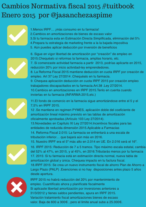 Hace un par de meses en este mismo blog presentábamos un artículo firmado por Juan Antonio Sánchez, socio coordinador de Aspime SL en el que se hablaba de la reforma fiscal 2015: una oportunidad para la farmacia. Además de ser uno de los artículos más visitados de enero de 2014, nos ofrecía la oportunidad de aprender qué beneficios fiscales (o no) traía para la farmacia este 2015.