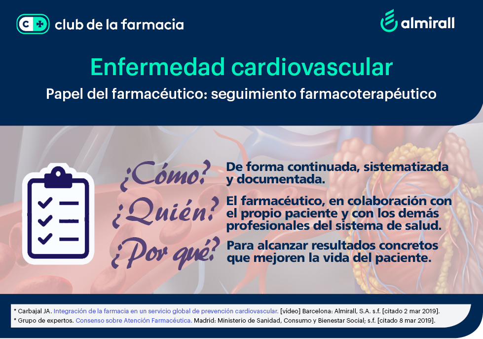 Dado la cercanía al paciente que ofrece la farmacia, resulta un buen lugar para educarle en la importancia de llevar un control de su enfermedad cardiovascular, seguir las pautas de tratamiento marcadas por su médico y adoptar unos hábitos de vida saludables. Concretamente, estos serían los tres pasos a seguir: