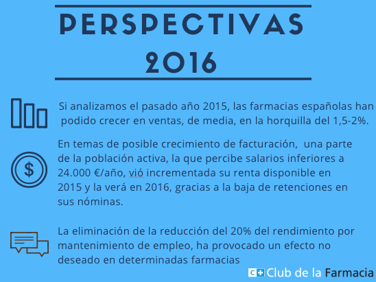 ¿Pero qué puede ocurrir en nuestro sector empresarial de oficinas de farmacia en 2016? Qué tipo de evolución tendrá nuestras principales macromagnitudes? ¿Tendremos de cara una fiscalidad favorecedora?