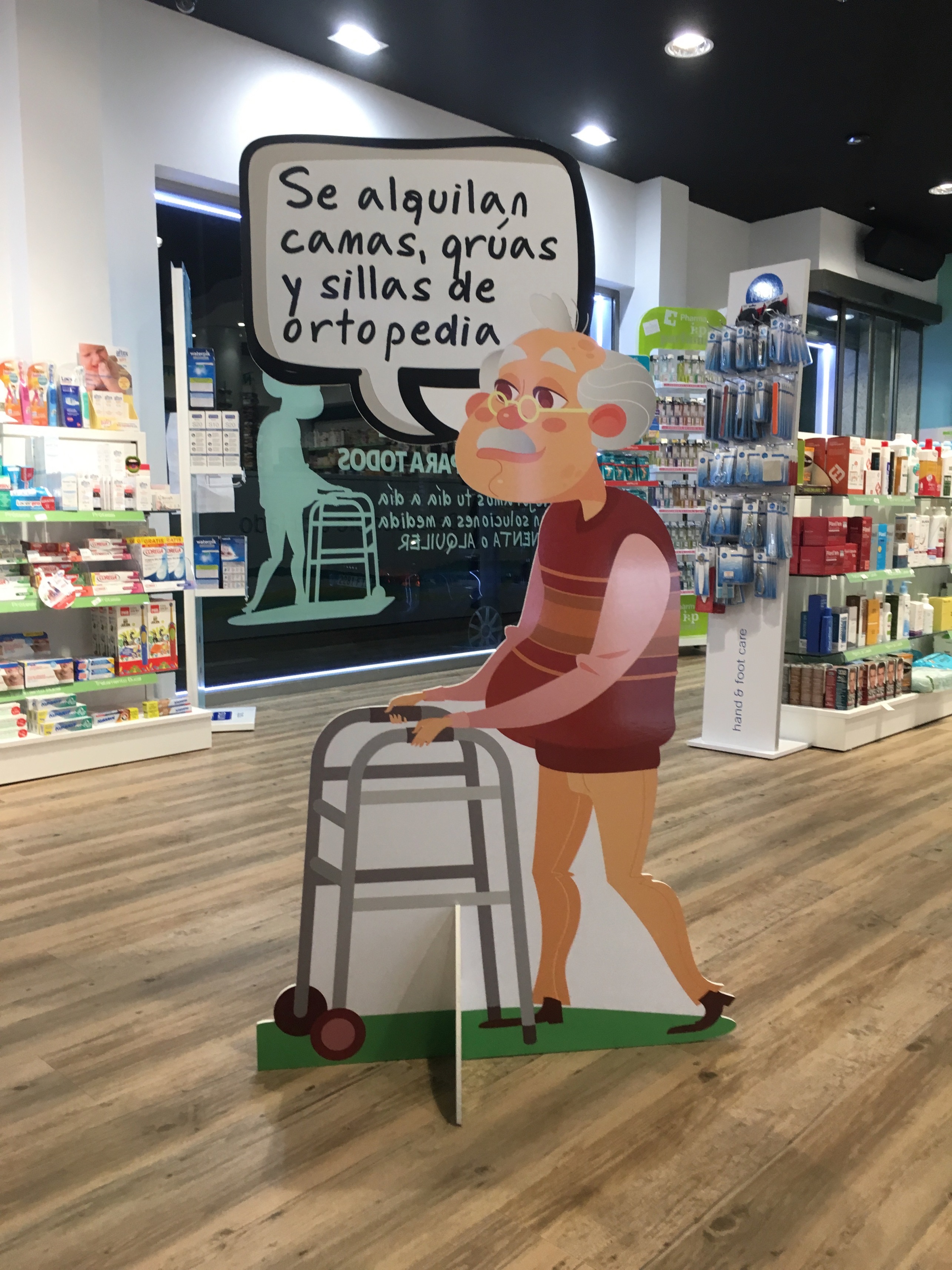 – La misma imagen en expositores para información sobre producto y precios en la zona de ortopedia.