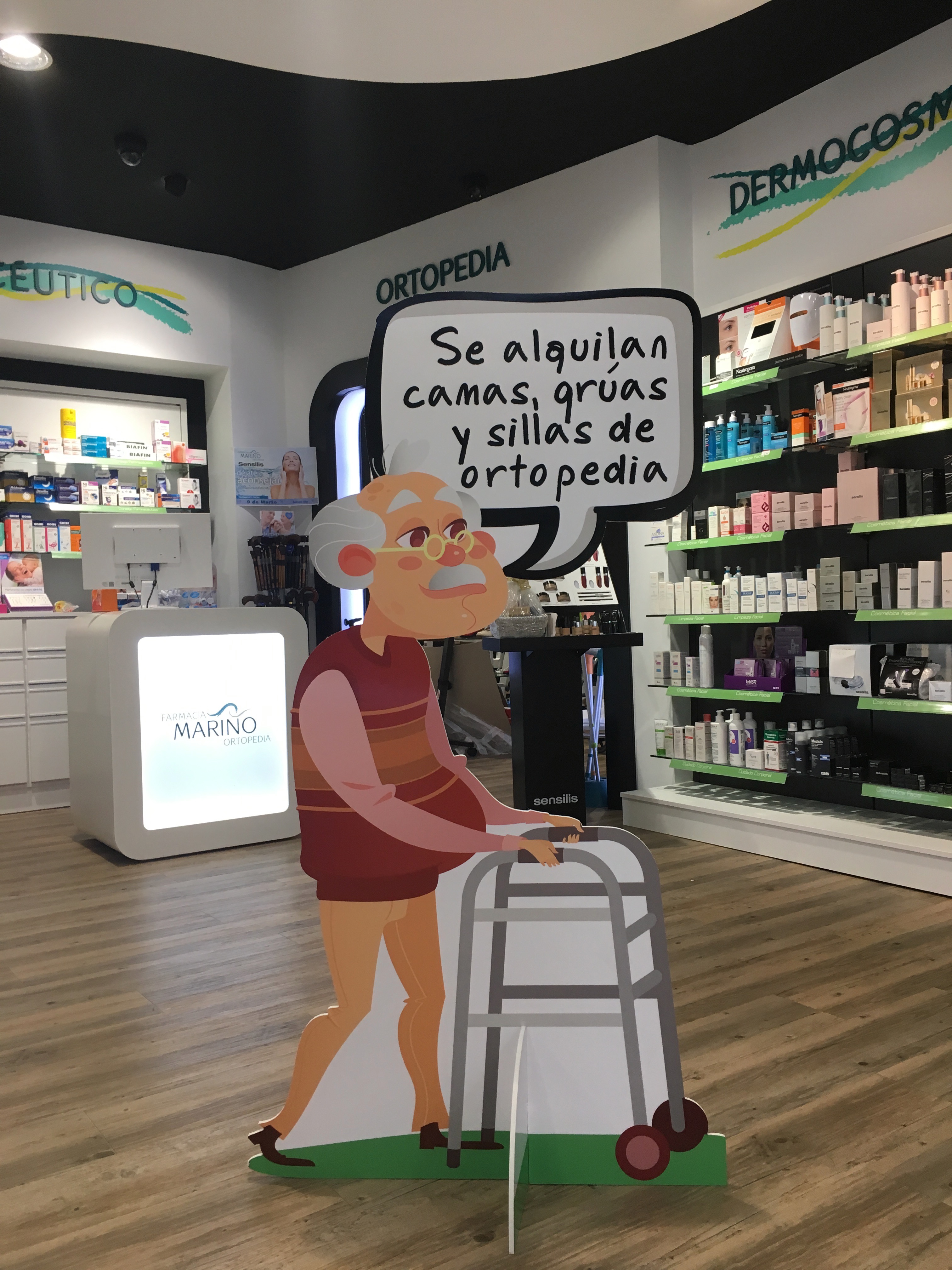 Ejemplo de comunicación visual en la farmacia: Farmacia Ortopedia Mariño