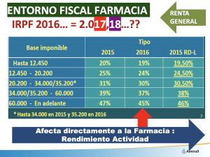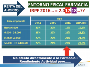 Actualmente, los ingresos de la farmacia sufren dos impuestos la renta del ahorro y la renta general.
