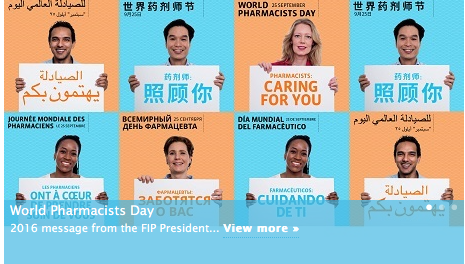 Con motivo del día mundial del farmacéutico, que tiene lugar el 25 de septiembre cada año, la profesión se une alrededor de un tema que plantea la Federación Internacional de Farmacéuticos (FIP). Este año, el tema para el día mundial del farmacéutico ha sido «cuido de ti». Con la etiqueta #WorldPharmacist Day o #dmf2016 los boticarios de alrededor del mundo han querido mostrar el orgullo de ser farmacéuticos.