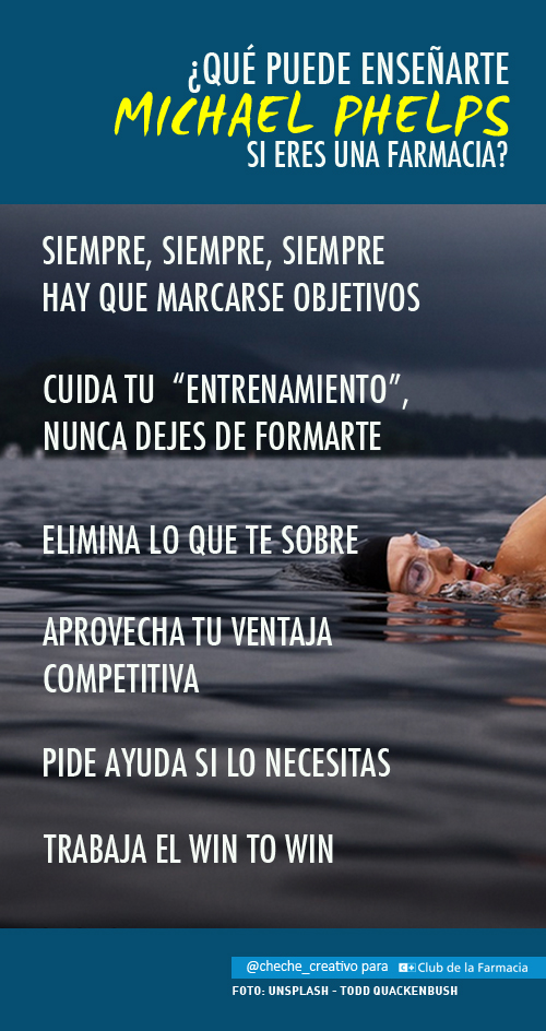 - Superó sus problemas personales y volvió al ataque, con ayuda experta. La vida de un deportista es muy dura mentalmente, ya que mantener la concentración y el equilibrio durante mucho tiempo no es nada sencillo. Y como puede pasarle a cualquier persona, Phelps tuvo un bajón y cayó en el alcohol y las drogas (no sé si recuerdas sus fotos con una pipa de agua…). Su paso por una clínica de desintoxicación consiguió sacarlo del agujero donde se estaba metiendo, devolviéndolo a lo más alto del deporte. Con la Marca de la Farmacia pasa algo parecido, ya que muchas veces, el desgaste y el desconocimiento hacen que no puedas salir sólo de problemas que pueden acabar con tu negocio. Consulta a profesionales que puedan aportar su know how para solucionar todos aquellos problemas que no te permiten avanzar o que te están haciendo perder brillo.