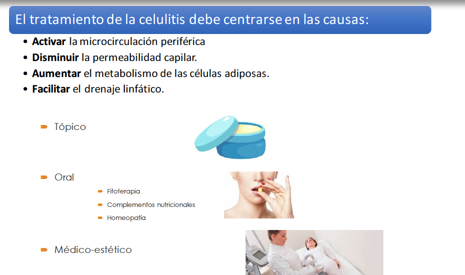 Y se habló de las diferentes maneras de hacerle frente: dieta, ejercicio,…. finalmente se abordó el tratamiento local a base de cremas y con complementos vía oral: