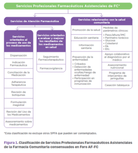 Asimismo, y más allá del propio rol farmacéutico, la farmacia comunitaria a menudo ofrece otros servicios profesionales asistenciales, como, por ejemplo los relacionados con la salud comunitaria[1]:
