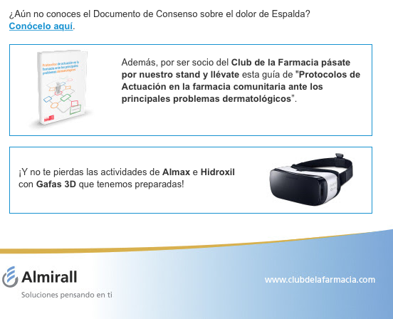 El próximo miércoles 22 tenemos una cita en Infarma Barcelona 2017. «Ponerse en la piel del cliente» es el título de la sesión organizada por Almirall, que tendrá lugar en el Aula Gestión de 10h30 a 11h30.