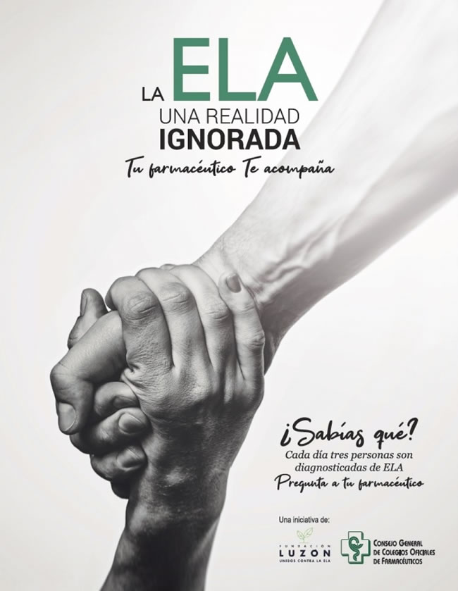 El pasado 13 de marzo se presentó en Madrid una nueva campaña sanitaria que aúna a farmacéuticos y pacientes para dar visibilidad a la esclerosis lateral amiotrófica (ELA), la tercera enfermedad neurodegenerativa en incidencia, tras la demencia y la enfermedad de Parkinson. Se estima que en España se diagnostican tres nuevos pacientes cada día, con una esperanza de vida de 3 a 5 años, aunque hay algunos casos de mayor supervivencia.